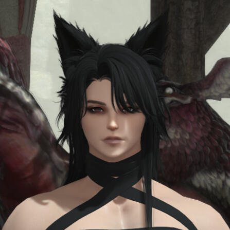 Sakito is considered to be bakeneko, or nekomata, not miqo'te. His tail splits in two from the mid point to the end and is fluffed like a kitsune's, his ears are particularly long and broader than a miqo'te's with fluff that lines the inside of their shape. He is a medium build with muscle tone and flexibility and bares few marks that make him seem feline in trait save a penchant for enjoying meat and fish primarily in his meals.He has champagne colored skin and black hair, and fur with deep blue highlights, and siamese blue eyes.He tends to wear comfortable clothing though much of it is often laid with leather or metal piecework as his work and role as an infiltrator for the Hand warrants some kind of protection against blades or projectile weaponry.PERSONALITY